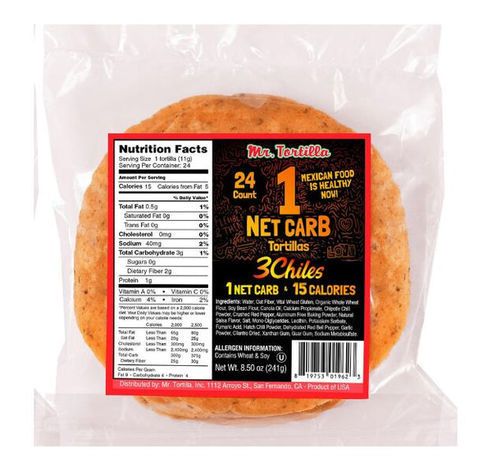 Mr. Tortilla 1 Net Carb 3 Chiles Tortilla - 8.5 Ounces