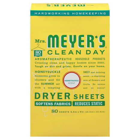 Mrs. Meyer's Dryer Sheets, Honeysuckle Scent - 80 Sheets