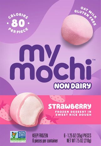 Frozen Dessert Ingredients: Cashew Milk (Water, Cashews, Canola Oil), Sugar, Strawberry Puree (Sugar, Strawberries, Water, Natural Flavor, Salt), Natural Strawberry Flavor, Natural Flavors, Stabilizer (Gum Acacia, Guar Gum, Locust Bean Gum), Citric Acid, Sea Salt, Beet Juice Concentrate (Color), Malic Acid. Mochi Dough Ingredients: Sugar, Water, Sweet Rice Flour, Trehalose, Corn Starch, Beet Juice Concentrate (Color), Citric Acid.
