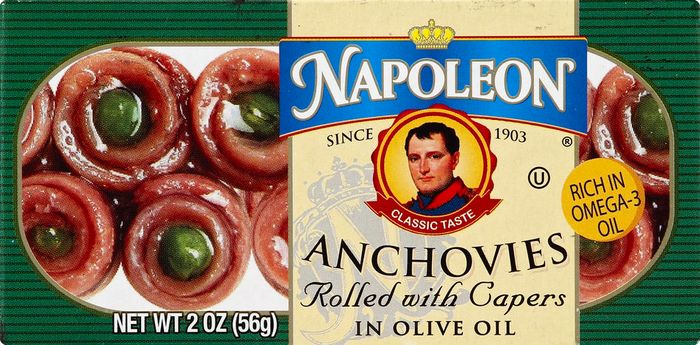 Napoleon Anchovies, Rolled with Capers, in Olive Oil - 2 Ounces