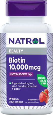 Natrol Biotin, 10000 mcg, Beauty, Tablets, Strawberry - 60 Tablets
