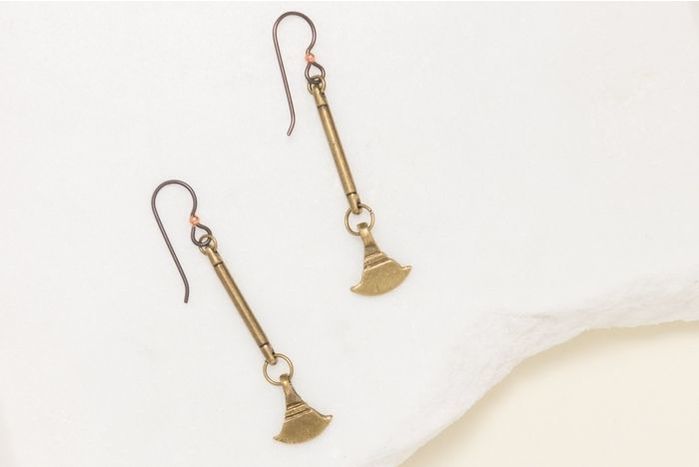 This subtle pendulum earring is made with Indian brass and a "conch shell" pendant from the Orissa tribe in India. Set on hypoallergenic niobium ear wire.