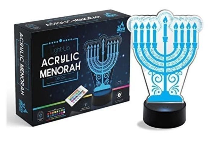 Ner Mitzvah Light-up Acrylic Menorah Decoration- LED Multicolored Hanukkah Table Decorations - High Tech Centerpiece Gadget and Chanukah Décor