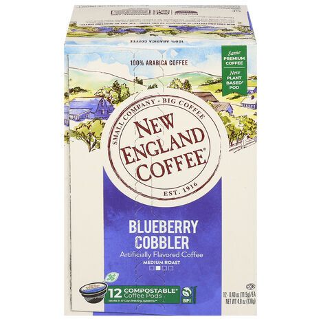 New England Coffee Coffee, 100% Arabica, Medium Roast, Blueberry Cobbler, Pods - 12 x 0.4 Ounces