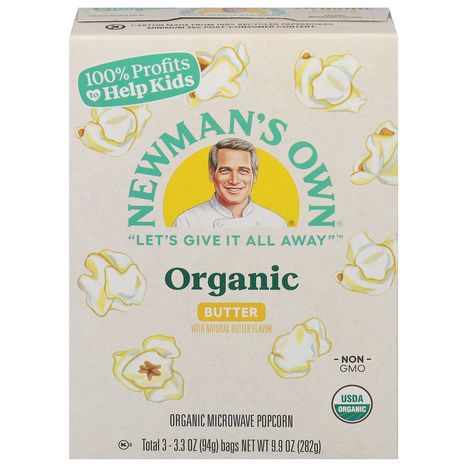 Newman's Own Microwave Popcorn, Organic, Butter - 3 x 3.3 Ounces