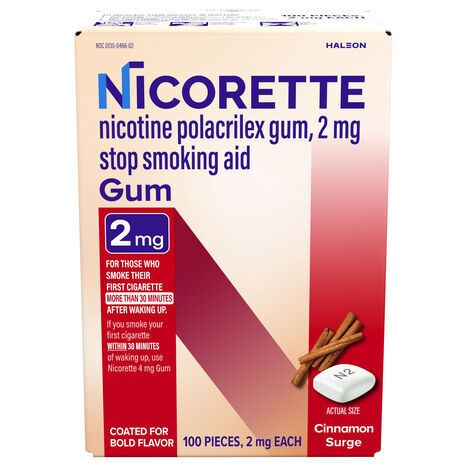 Nicorette Stop Smoking Aid, 2 mg, Gum, Cinnamon Surge - 100 Pieces