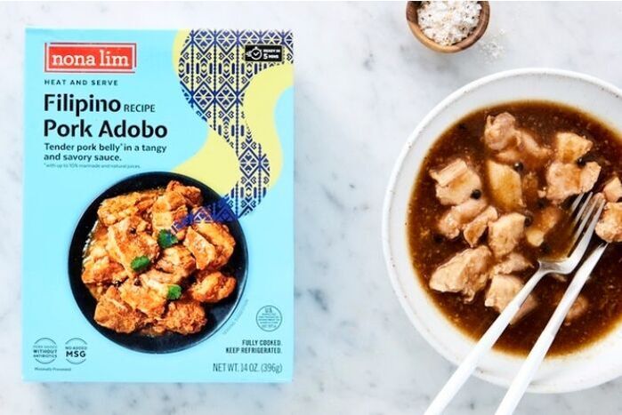 Nona Lim's Filipino Pork Adobo frozen entree is a new, savory dish that brings the classic Asian comfort food of pork adobo to your table. This entrée features tender pork belly marinated and simmered in a traditional adobo sauce. The result is a rich and tangy flavor with melt-in-your-mouth tenderness. It's perfect when served over rice or tucked inside a fluffy lotus leaf bun with a touch of mustard for an enhanced umami experience.
