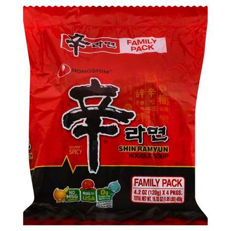 Nongshim Noodle Soup, Shin Ramyun, Gourmet Spicy, Family Pack - 4 Each