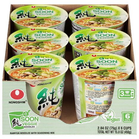 NongShim Soon Cup Noodle Soup, Veggie - 6 Pack