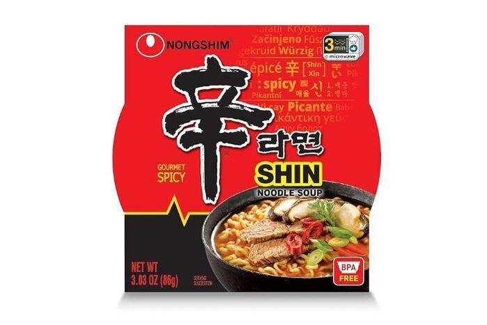 Nongshim Soup, Noodle, Shin Bowl, Gourmet Spicy - 3 Ounces