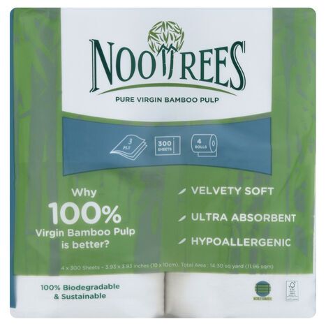 Nootrees Bathroom Rolls, 3-Ply - 4 Rolls