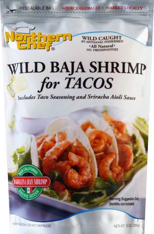 Raw Shrimp (Wild Caught). Sriracha Aioli Sauce (Water, Vegetable Oil, Sugar, Distilled Vinegar, Pickled Red Chili, Garlic, Salt, Onion, Modified Tapioca Starch, Natural Spices), Taco Mix Seasoning (Chili Pepper, Cumin, Oregano, Red Pepper, Dried Onion, Salt, Tapioca Maltodextrin, Sugar, Paprika, Garlic Powder, Citric Acid, Tapioca Starch, Sunflower Oil, Yeast Extract).