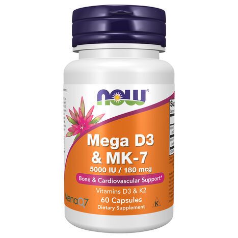 NOW 5000 IU/180 mcg Mega D3 & MK-7 - 60 Capsules