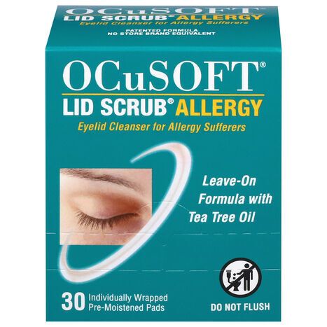 OCuSOFT Lid Scrub Allergy Contains: Water, Camellia Sinensis (Green Tea) Leaf Extract, Polysorbate 20, Butylene Glycol, Melaleuca Alternifolia (Tea Tree) Leaf Oil, Phytosphingosine Hydrochloride (PSG-2), Polyaminopropyl Biguanide, 1,2-Hexanediol, Caprylyl Glycol.