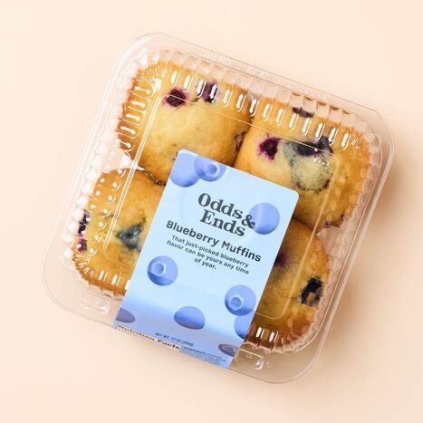 Notice something different? These muffins are now part of the Odds & Ends family and have a new look! We didn’t want any of the previous packaging to go to waste, so in true Misfits fashion, we’re continuing to use the remaining boxes with the now-vintage Imperfect Foods design until our stash runs out. If your product arrives in the old packaging, don’t worry—the sweet muffins inside are as fresh as ever! Fluffy, flavorful, and bursting with blueberries, these classic blueberry muffins are frozen while still fresh to retain their "just-out-of-the-oven" quality. Simply thaw your muffin and enjoy it with a mug of coffee or a spot of tea for a delightfully easy breakfast. Enriched Wheat Flour (Flour, Niacin, Reduced Iron, Thiamine Mononitrate, Riboflavin, Folic Acid), Cane Sugar, Pastuerized Whole Eggs, Canola Oil, Water, Blueberries, Buttermilk Powder, Sunflower Lecithin, Enzymes, Baking Powder (Sodium Acid Pyrophosphate, Sodium Bicarbonate, Corn Starch, Monocalcium Phosphate), Salt.