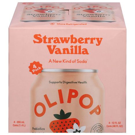 Olipop Soda, Strawberry Vanilla, 4 Pack - 4 x 355 Milliliters