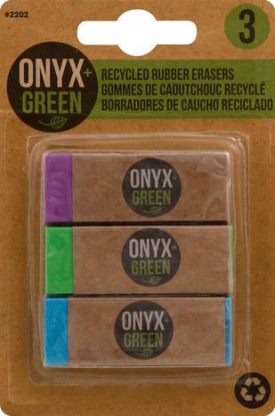 Onyx + Green Erasers, Recycled Rubber - 3 Erasers
