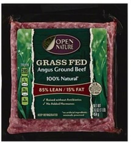 Open Nature Beef Ground, Angus, Grass Fed, 85% Lean - 16 Ounces
