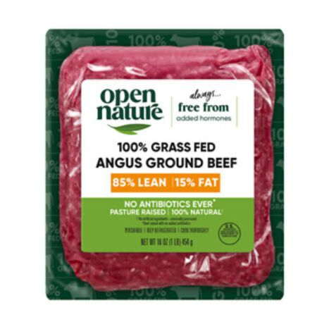Open Nature Beef Ground, Angus, Grass Fed, 85% Lean - 16 Ounces