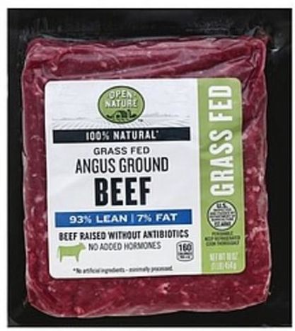 Open Nature Beef Ground, Angus, Grass Fed, 93% Lean - 1 Piece