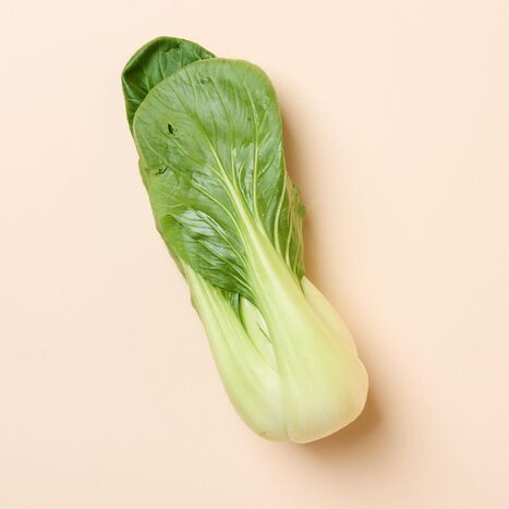 Bok choy is recognizable by its bulbous white bottom and leafy blades in shades of green that vary depending on maturity. Though a relative of cabbage, it’s milder in flavor and tastes more like leafy greens such as chard.