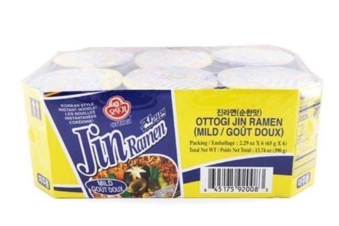 Ottogi Jin Ramen Mild Bundle 65g x 6 Cups, 390g