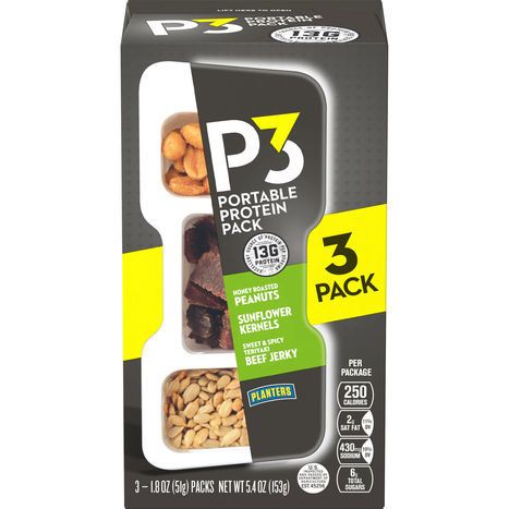 P3 Honey Roasted Peanuts, Sunflower Kernels & Sweet & Spicy Teriyaki Beef Jerky Snack Mix - 3 x 1.8 Ounces