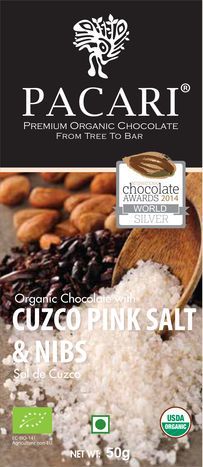 Pacari Premium Organic Chocolate Bar, Cuzco Pink Salt & Nibs, - 1.76 Ounces