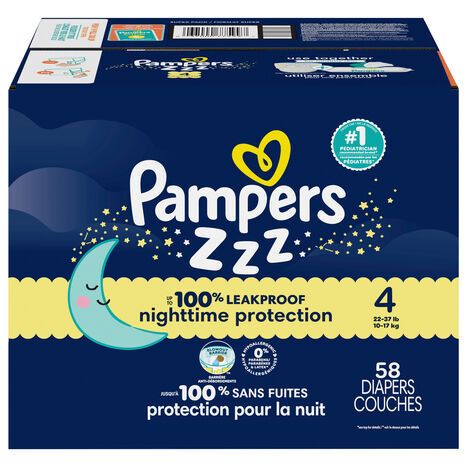 Pampers Nighttime Protection Size 4 Diapers (22-37 lbs (10-17 kg)) - 58 Diapers
