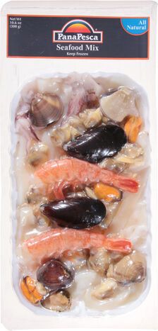 Calamari, Cooked Whole Shell Clams, Cooked Clam Meat, Cooked Mussel Meat, Cooked Whole Shell Mussel, Shrimp.