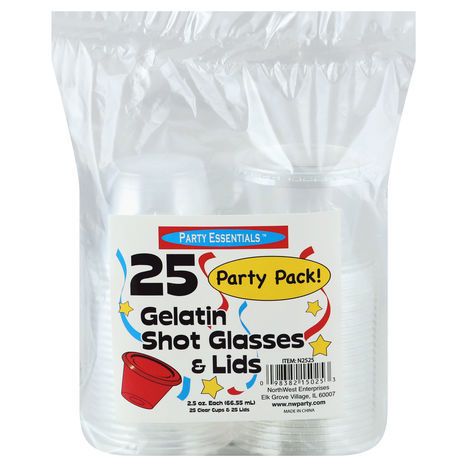 Party Essentials Shot Glasses & Lids, Gelatin, 2.5 Ounce, Party Pack - 25 Shot Glasses & lids