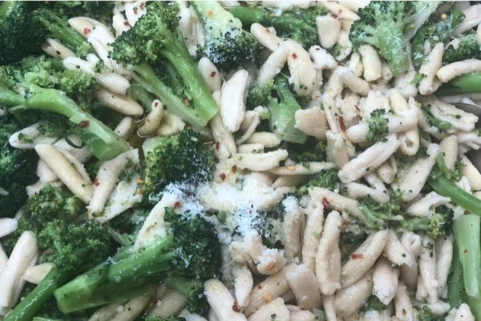 Pasta with broccoli sauteed in garlic and olive oil. Simple yet delicious. Add a little grated cheese and you have fantastic side dish. Also stands alone as a great meal.