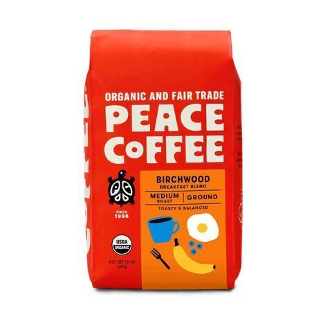 Peace Coffee works exclusively with small-scale farmers who are part of local cooperatives, which means they share in profits as a collective group. The Birchwood Breakfast Blend is a medium roast that’s toasty and balanced.