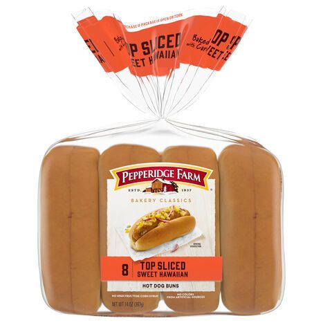 Pepperidge Farm Hot Dog Buns, Top Sliced, Sweet Hawaiian - 14 Ounces