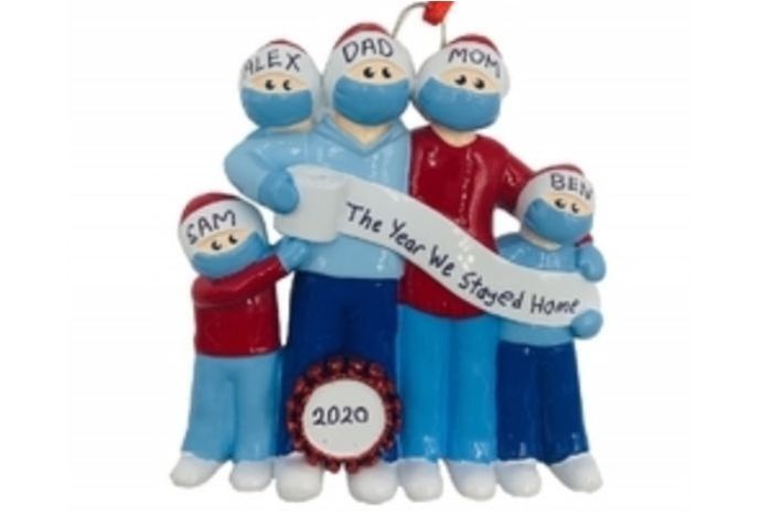 Personalized Covid-19 Pandemic Family of 5 Christmas Ornaments