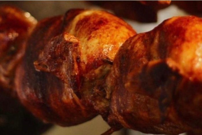 Whole chicken marinated with garlic, cumin, mustard, orange juice, white pepper, black pepper, bay leaf and a little cerveza.