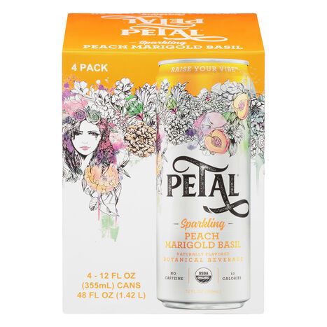 Petal Botanical Beverage, Peach Marigold Basil, Sparkling, 4 Pack - 4 x 12 Fluid Ounces