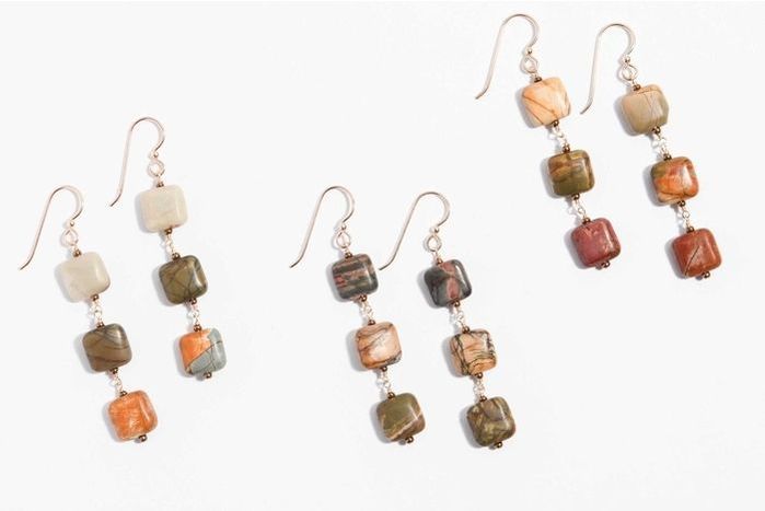 Each pair of earrings combines unique stones and color may vary from piece to piece, making each one as unique as its owner. Please add any color preferences in your order notes and we will do our best to accommodate you.