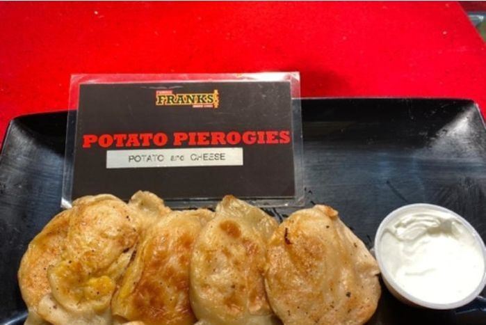 Our potato and cheddar pierogies are locally made. We also have them available frozen by the dozen to cook at home! Add a side of sour cream for 50 cents(See Our Sides Selections). (All prices plus sales tax.)
