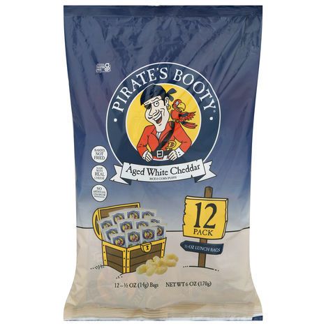 Pirate's Booty Rice & Corn Puffs, Aged White Cheddar, 12 Pack - 12 x 0.5 Ounces