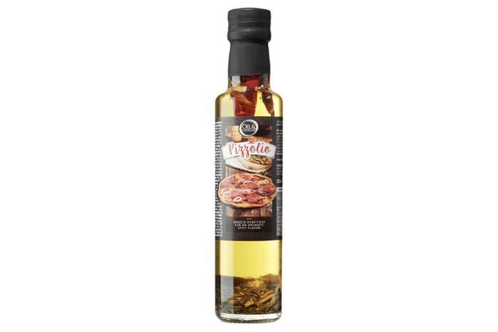 The Pizzolio extra virgin olive oil is a product of Spain with spicy, garlic flavors and a touch of chili, oregano and rosemary. Drizzle it over pizza, pasta or garlic bread.