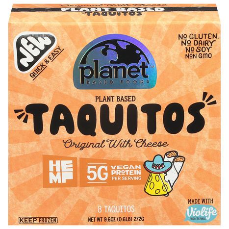 Planet Based Foods Taquitos, Plant Based, Original with Cheese - 8 Taquitos
