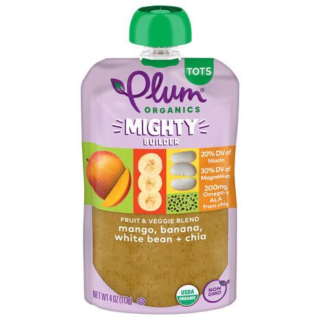 Plum Organics Fruit & Veggie Blend Mango, Banana, White Bean + Chia - 4 Ounces