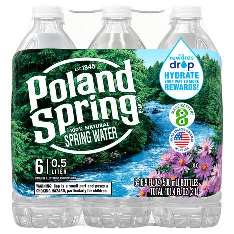 Poland Spring 100% Natural Spring Water - 6 x 16.9 Fluid Ounces
