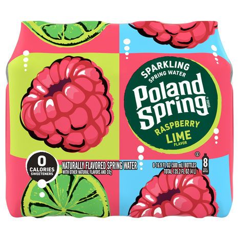 Poland Spring Spring Water, Sparkling, Raspberry Lime Flavor - 8 x 16.9 Fluid Ounces