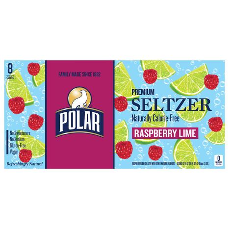 Polar Premium Naturally Calorie-Free Raspberry Lime Seltzer - 8 x 12 Fluid Ounces