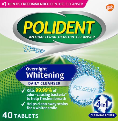 Polident Daily Cleanser, Whitening, Overnight, 4 in 1, Tablets - 40 Tablets