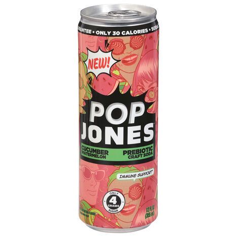 Pop Jones Prebiotic Craft Soda, Cucumber Watermelon - 12 Fluid Ounces