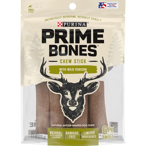 Prime Bones Bones Made in USA Facilities Limited Ingredient Small Dog Treats, Chew Stick With Wild Venison - 6 Pack