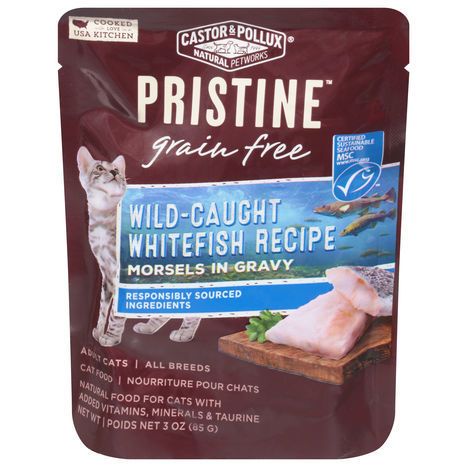 Pristine Cat Food, Grain Free, Wild-Caught Whitefish, Morels in Gravy, Adult - 3 Ounces
